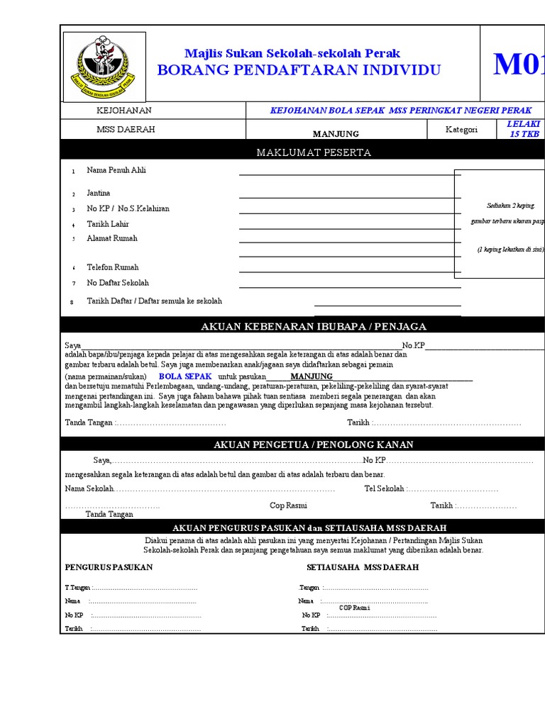 Borang permohonan boleh didapati di sini. Perlis, kedah, pulau pinang, perak utara : Borang pendaftaran individu m01 permainan/sukan : People interested in borang m01 also searched for. Semua maklumat yang perlu diisi dalam borang permohonan pinjaman hendaklah ditulis dengan.