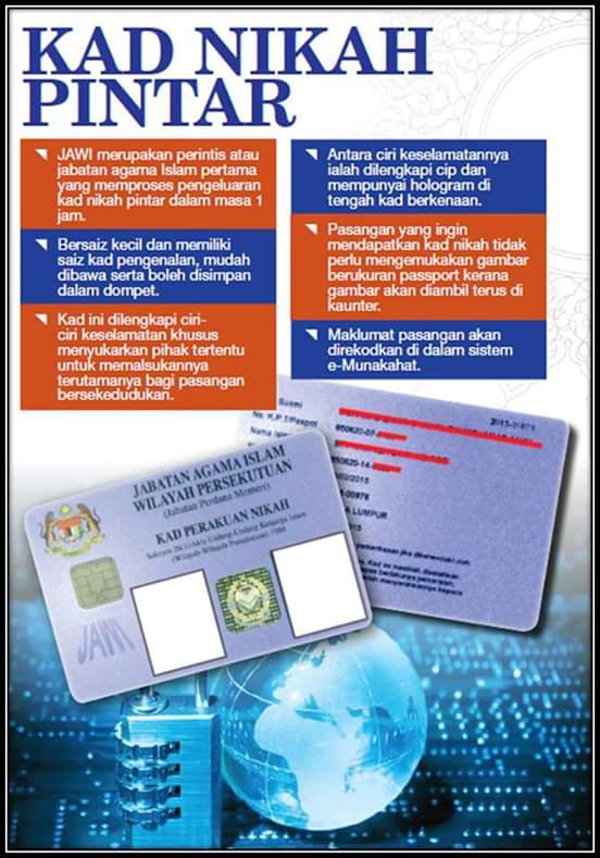 Kad Nikah Pintar Kelantan / CintaBersatuDijahZaki: Pengantin basi baru dapat Kad Nikah : Nikah kahwin ramai ramai at ipoh.. Pasangan suami isteri yang belum mempunyai kad nikah pintar boleh memohon untuk mendapatkannya di ruang pameran jabatan hal ehwal agama islam kelantan (jheaik) sempena karnival halal kelantan 2011 yang akan bermula sabtu ini. Gambar berukuran passport suami dan isteri (isteri perlu bertudung litup); Nikah kahwin ramai ramai at ipoh. Bila fikir, buat apa nak tangguh sebab esoknya nak sanding, kahwin kan perkara yang baik, katanya yang berniaga sendiri. Borang permohonan boleh diisi seawal awalnya 90 hari dari tarikh akad nikah atau selewat lewatnya 7 hari bagi kad perakuan nikah akan dikeluarkan sebanyak dua keping kad untuk suami dan isteri.