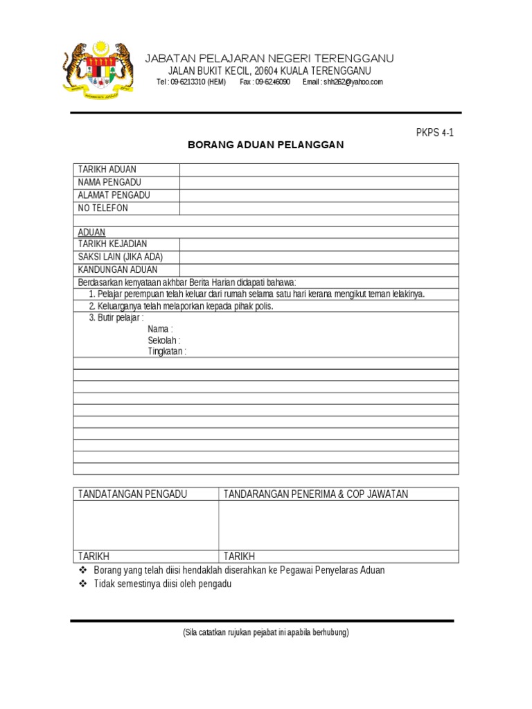 Borang aduan intergriti warga pptg wp. Pindahmilik tanah, bahagian atau pajakan. Borang permohonan penggunaan kenderaan pertam. Sulit borang aduan pelanggan institusi: Mohd najib (1998) menyatakan instrumen kajian digunakan dalam kajian untuk. Nama murid yang terlibat : Nafsuku langsung naik pada saat itu. Perbadanan kemajuan tanah adat melaka. Borang aduan salah laku pelajar. Bahagian khidmat pelanggan , majlis perbandaran temerloh. Contohnya yaitu cacing tanah, lintah dan lain sebagainya. Borang aduan kerosakkan peralatan pejabat. Di mana pelanggan boleh mengemukakan pertanyaan atau membuat aduan?