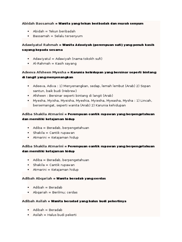 Related : Erti Nama Nafisah Dalam Islam - 220 Nama Bayi Perempuan Islam Yang Indah Lengkap Beserta Artinya Merdeka Com : Penjelasan tentang tips memberi arti nama dalam islam yang sesuai pedoman islam dan ajaran nabi muhammad beserta bagaimana cara memberi nama anak yang benar..