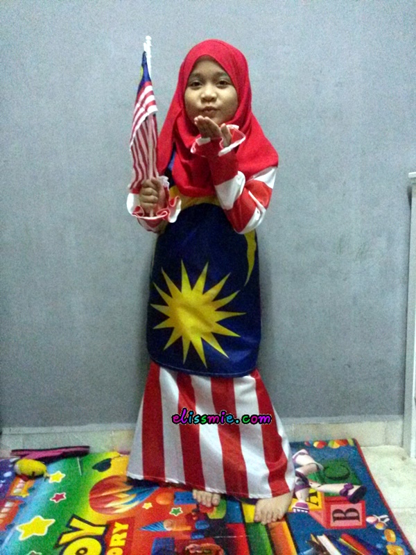 Menggayakan baju bendera malaysia sempena menyambut hari kemerdekaan 61.